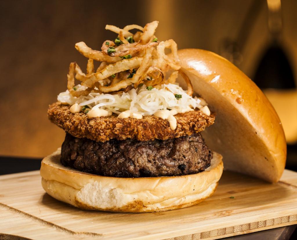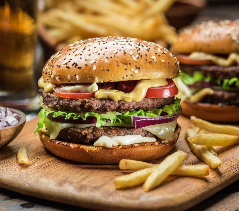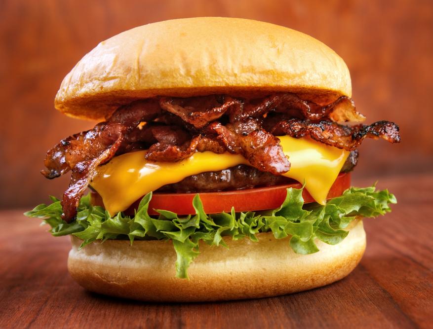 ![]() AMOSTRADOSão 3 saborosas fatias de bacon, alface, cebola, hambúrguer de 120 gramas de carne bovina, queijo derretido, tomate e um trio de delícias. |